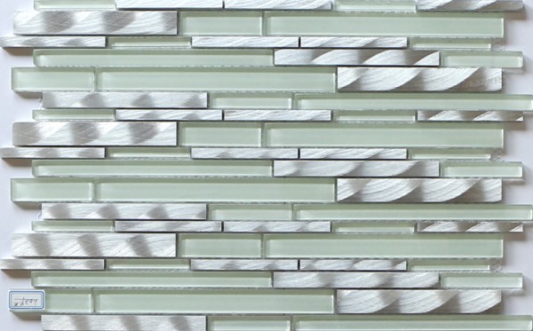 Small strip Glass mix metal mosaic linear puzzle pattern brigh decoration Images |